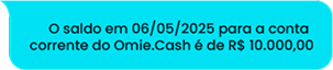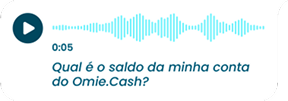 Saiba mais →Para saber o seu saldo bancário em tempo real, basta enviar uma mensagem de texto ou voz: “Qual meu saldo da conta corrente Omie.Cash e 02/05/02025?”.